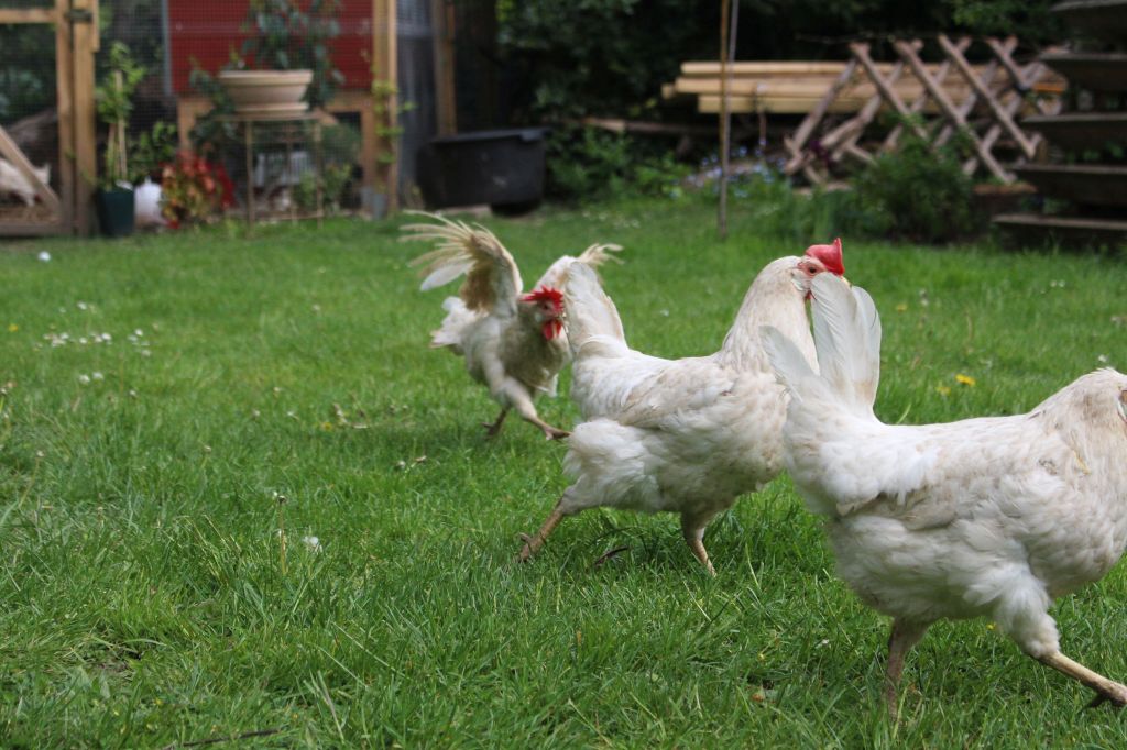 Natürlich waren wir darauf vorbereitet, dass die Hühner zunächst ihre Rang- bzw. Hackordnung klären würden, was zunächst mal ein eher wenig schöner Vorgang für Beobachter ist. Was uns in seinem ganzen Ausmaß hingegen nicht klar war, betrifft die Angewohnheit der Hennen, die anderen Tiere zu „picken“ und mitunter einen regelrechten Kannibalismus zu entwickeln, was man den Tieren nicht verübeln kann, wenn man weiß, dass sie dort, wo sie herkamen, systematisch unterernährt wurden: Für den „Landwirt“ genügte es vollkommen, wenn ein Großteil der Tiere, die ansonsten bis zu 12 Jahre alt werden könnten, das erste Jahr überstehen würde – in welchem Zustand sie waren, spielt für die Industrie keine Rolle. Auf diese Weise, durch das „Picken“, das vielleicht harmlos klingt, aber eine ernsthafte Gefahr ist, haben wir innerhalb der ersten drei Wochen zwei Hennen verloren. Sie sind von den anderen am frühen Morgen totgepickt worden, und für uns war es sicher der Tiefstpunkt, diese beiden Tiere beerdigen zu müssen, die ihr Leben in Freiheit gerade erst erlangt hatten und dann einen derart grauenvollen Tod gestorben sind.