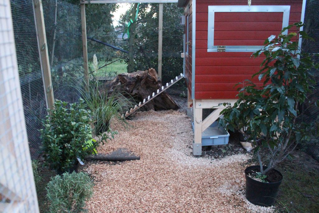 Am nächsten Tag haben wir sie dann ihr Gehege erkunden lassen, was zunächst aber daran scheiterte, dass die Hühner ihren Stall gar nicht verlassen wollten. Kein Wunder, haben sie doch bislang noch nie zuvor das Leben unter freiem Himmel kennengelernt. Irgendwann war der Mut dann doch größer, und sie haben sich über die Hühnertreppe nach draußen gewagt, wie Aliens in eine völlig fremde Welt.