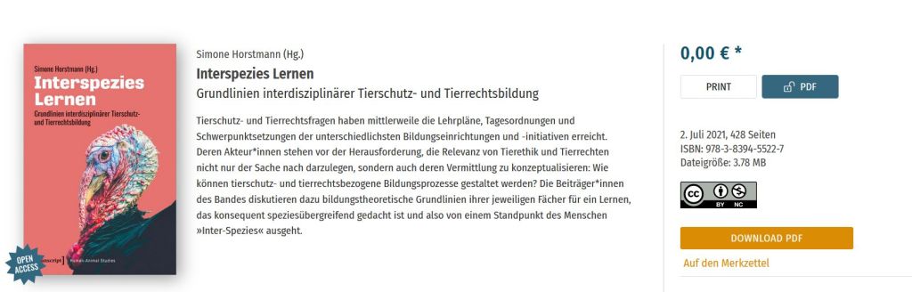 Ganz besonders freue ich mich über das Erscheinen meines Sammelbandes „Interspezies Lernen“! Der Band ist als Open-Access-Publikation online frei abrufbar!