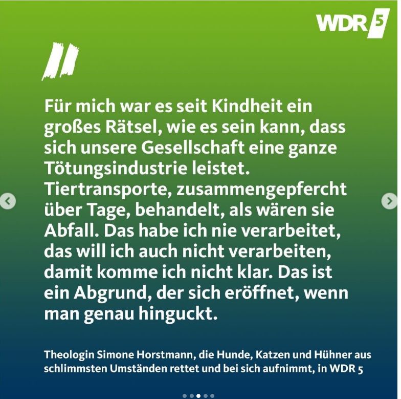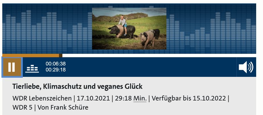 Eine wunderbare WDR-Sendung ist gerade frisch on air: In der Sendung „Tierliebe, Klimaschutz, veganes Leben“ wird auch unsere hiesige Interspezies-Gemeinschaft porträtiert – ein sehr gelungener Beitrag, wie ich finde (und bei dem Friedwart am Ende groß rauskommt) 😉