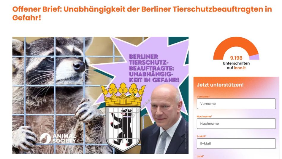 Es gibt eine Möglichkeit, Kathrin Herrmann schnell und unbürokratisch zu unterstützen und sich mit ihr und ihrer wertvollen Arbeit zu solidarisieren: @animalsociety.de hat einen offenen Brief an Kai Wegner formuliert, den ich mit vielen weiteren Kolleg:innen unterzeichnet habe – dem Appell kann & sollte man sich in einer entsprechenden Petition anschließen, die hier verlinkt ist.