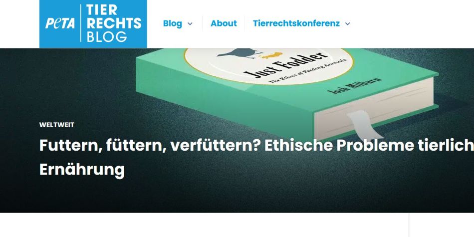 Für den Peta-Tierrechtsblog habe ich eine Buchbesprechung zu dem Band „Just Fodder“ des britischen Philosophen Josh Milburn geschrieben: Eine faszinierende Lektüre, die sich der Ernährung von (anderen) Tieren als einem tierethischen Problem widmet: Wie sollen wir andere Tiere ernähren? Welche Probleme bringt deren eigene Ernährung mit sich, insbesondere dort, wo wir es mit den sog. Raubtieren zu tun bekommen? Milburn kartiert in seinem Band das Phänomen der tierlichen Ernährung – eine große Leseempfehlung! Hier geht es zu der Besprechung.