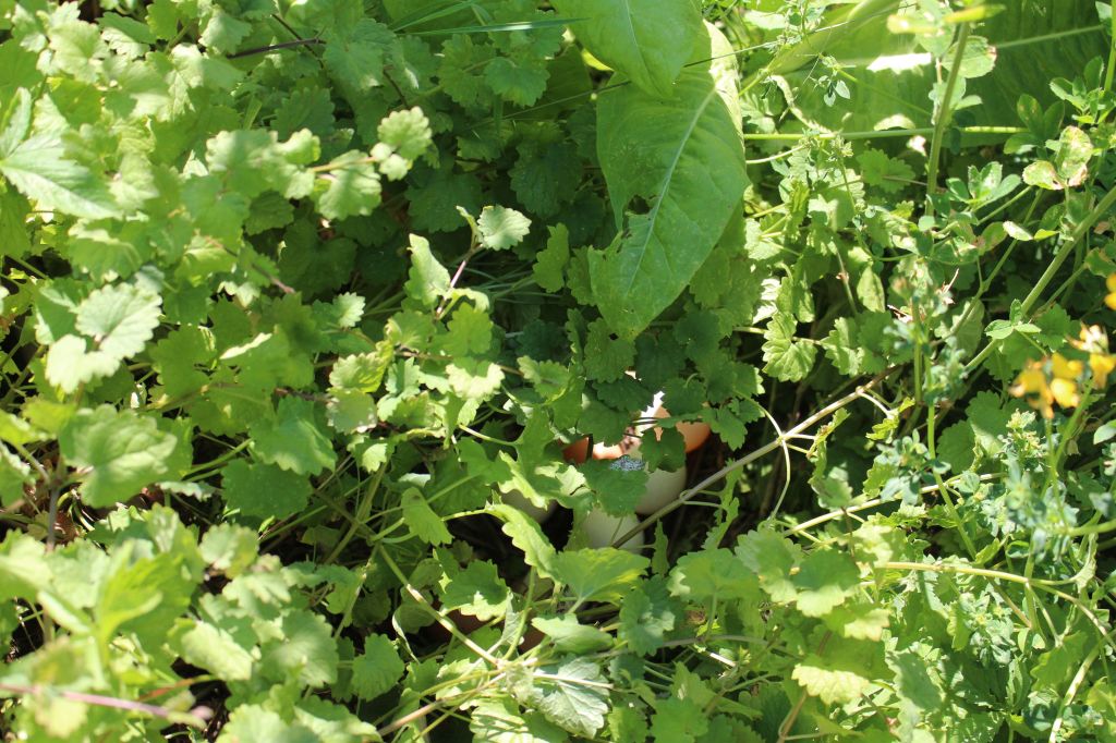 Auch den anderen Hühnern geht es gut. Als ich heute früh die Tür zum Gehege geöffnet habe, rannte Evita (eins der weißen Hühner) schnurstracks zu unserer mittlerweile recht hohen Wildblumenwiese und verschwand dort für eine Weile. Nun eben habe ich dann auch den Grund dafür entdeckt: