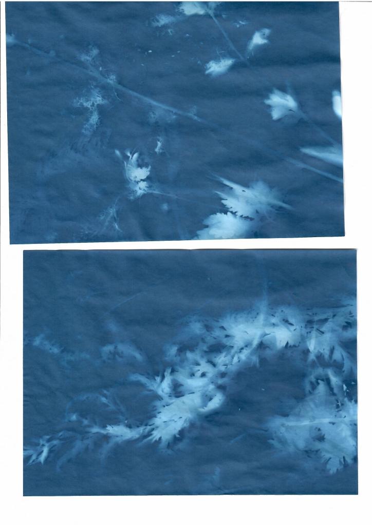 Künstlerisch (und technisch wohl vor allem) ist noch Luft nach oben zu erkennen bei den „Cyanotypien“. Ich musste etwas probieren, um überhaupt einige erkennbare Strukturen auf dem Papier abbilden zu können, aber langsam wird es besser…eine schöne Nebenbeschäftigung am Sonntag.