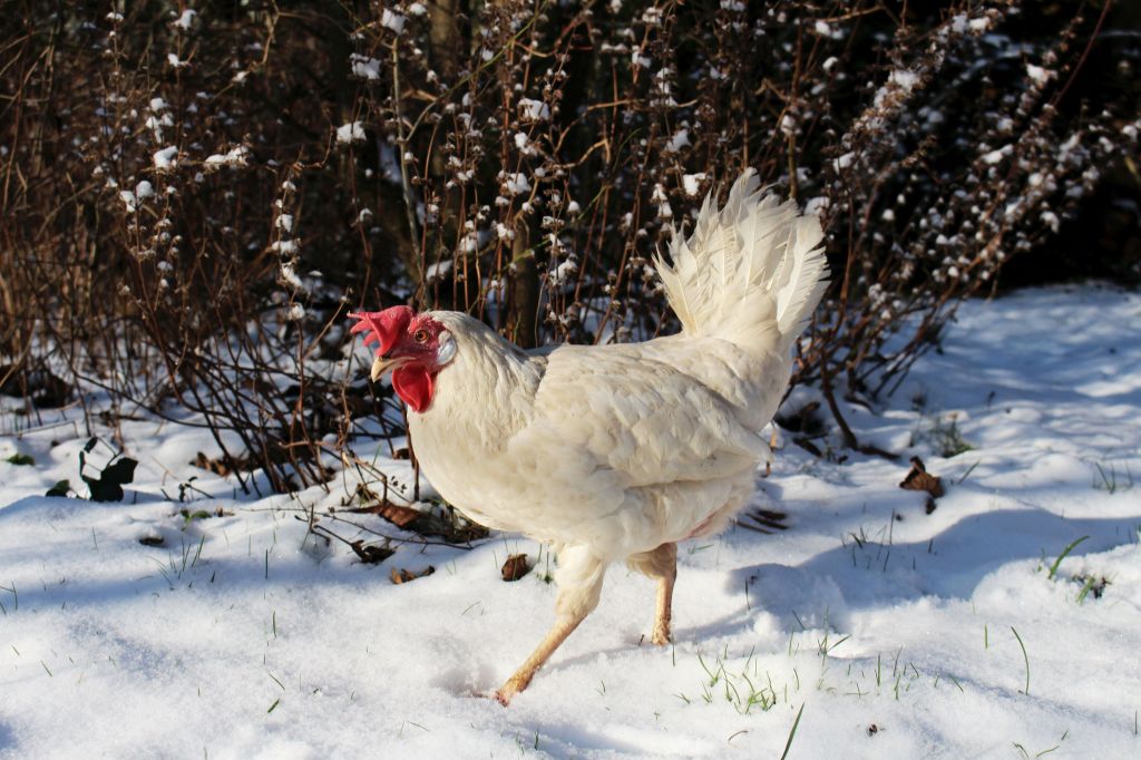 Nichts geht über den überraschten Gesichtsausdruck der Hühner im Schnee. Das sonnige Wetter lässt sie (und mich) die Kälte ein wenig vergessen. Zufällig habe ich dann beim Einsortieren der heutigen Fotos eine Aufnahme von Babette vom Mai letzten Jahres gefunden – unglaublich, wie winzig und dürr sie war. Manchmal kann man den gesamten Schrecken der Tierindustrie erst mit etwas Distanz erfassen…