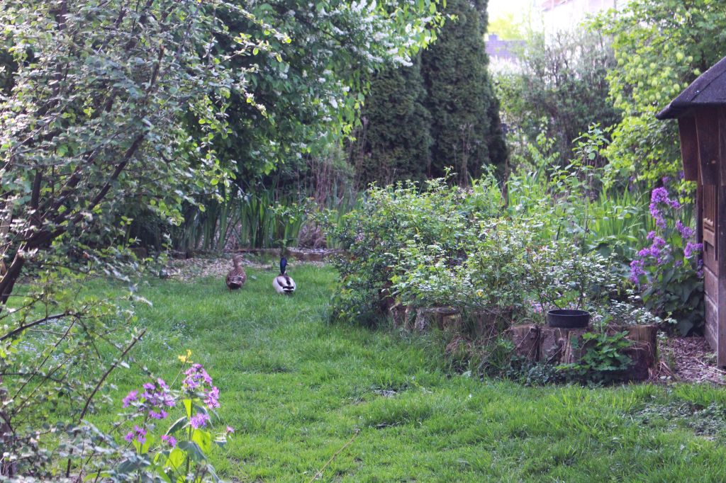 Seit einiger Zeit haben wir regelmäßig Besuch von einem Entenpärchen – sie haben unseren („unseren“) Teich für sich entdeckt und tummeln sich gerne auch mal so in diversen Ecken des Gartens.