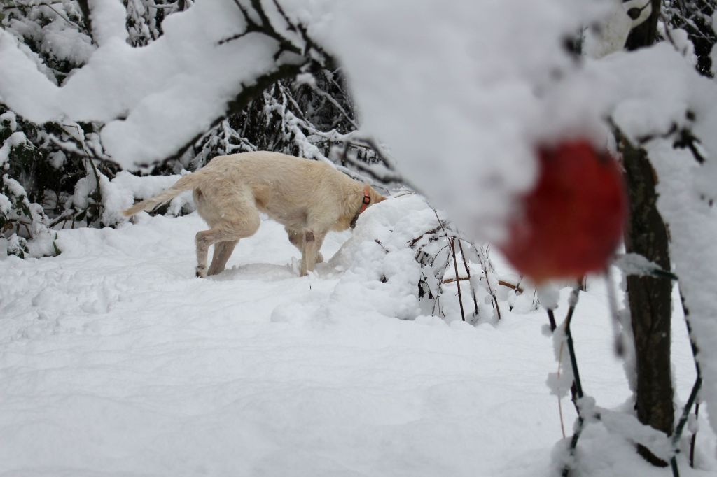 Auf diese Kombi mussten wir dann unsere Hoffnung setzen. Ich habe meine Tage und Nächste damit verbracht, das zu tun, wovon einem üblicherweise abgeraten wird: Nämlich online nach Studien und Forschungsergebnissen zu vergleichbaren Fällen zu suchen. Nach dem vierten Tag in der Klinik war dann ein Gespräch mit der leitenden Oberärztin angesetzt. Wir sollten Hermes aus der Klinik abholen, ihm noch ein paar schöne Tage zuhause bereiten, und dann über eine Einschläferung nachdenken. Die Werte hätten sich nicht stabilisiert, weder das Cortison noch das Antibiotikum hätten Wirkung gezeigt. Er hatte noch immer genau zwei nachweisbare Thrombozyten im Blutbild (bei einem Referenzbereich von 140 – 520…); man vermutete eine akute Leukämie, also eine Ursache im Knochenmark. Hermes war nach den insgesamt 4,5 Tagen abgemagert, unendlich erschöpft und vollkommen blass; nur sein Unterbauch hatte großflächige lilafarbene Einblutungen unter der Haut. Alles schien völlig aus dem Ruder zu laufen. Die Medikamente bekam er vorläufig weiter. Und nach zwei Tagen zuhause zeigte sich dann, dass es ihm tatsächlich ein wenig besser – er hatte einen gesunden Appetit, lief freiwillig einige Runden durch den Garten. Seine Blutwerte hat dann unsere Haustierärztin mehrfach in der Woche kontrolliert – und während die sich die Thromboyten erholten, gingen die anderen Werte zunächst in den Keller, erholten sich dann aber ebenfalls. Seitdem bekommt er noch immer Cortison – viel weniger als zu Beginn, und wir reduzieren weiter, sofern es die Blutwerte erlauben. Dafür, dass wir uns geistig schon von ihm verabschiedet hatten, bin ich nun so unendlich glücklich darüber, dass er wieder hier und dem Augenschein nach auch gesund und munter ist. Die Diagnose „akute Leukämie“ konnten wir mittlerweile ausschließen, es scheint sich um eine Autoimmunerkrankung zu handeln – die bis dato mit dem kleinen Wörtchen „idiopathisch“ gekennzeichnet wird, was eigentlich auch nur ausdrückt, dass niemand so wirklich weiß, warum sein Körper plötzlich angefangen hat, gegen sich selbst zu kämpfen. Im Nachhinein scheint uns die Zeit im Oktober/November fast unwirklich, dunkel und traurig – was bei diesem unendlich unwahrscheinlichen Ausgang aber auch nur eine untergeordnete Rolle spielt.