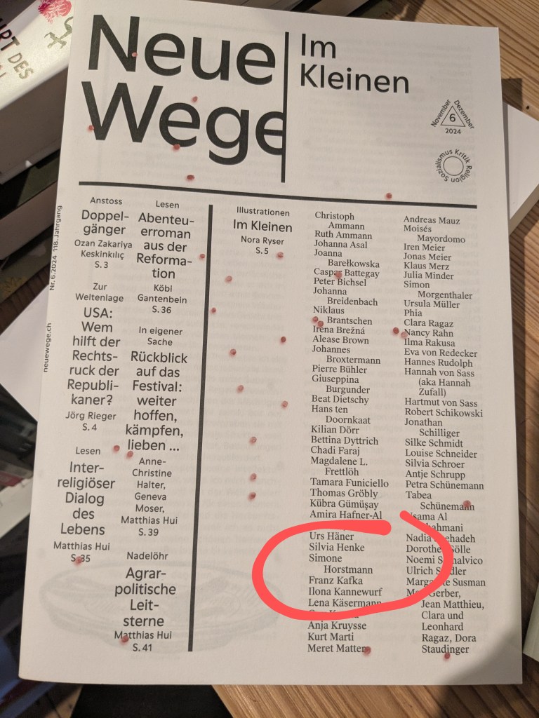 Und auch das kann ich nun endlich von der Bucketlist streichen: Direkt neben Franz Kafka genannt zu werden – der Nov./Dez.-Ausgabe der „Neuen Wege“ sei Dank.