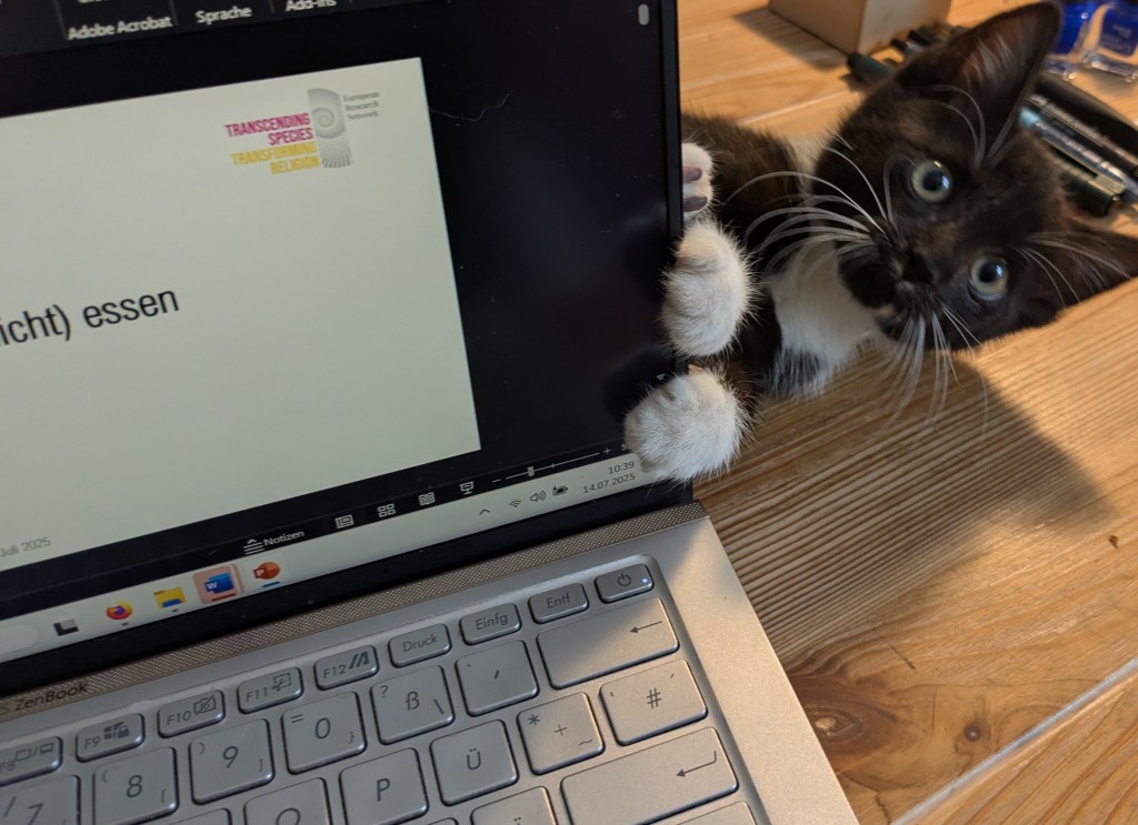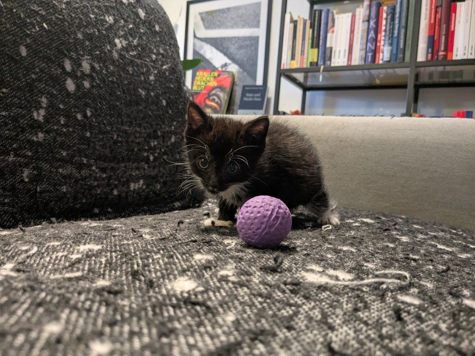 Der kleinen Roberta (unsere Fundkatze, s.u.) geht es prima – sie hat sich erholt, ist deutlich gewachsen und hat auch die Hunde bereits ganz auf Linie gebracht… mir „hilft“ sie heute bei der Erstellung einer Powerpoint… als KINI-Assistentin, sozusagen…