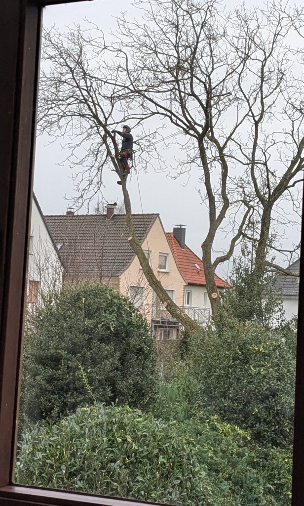 Unser riesiger alter Walnussbaum (ca. 80 Jahre) wurde gefällt, weil er morsch geworden war. Nun sieht mit einem Mal nicht nur der Garten gänzlich anders aus (nicht so katastrophal, wie ich befürchtet hatte, aber etwas weniger wild, eher menschengemacht, etwas mehr wie ein üblicher Schrebergarten), sondern ich ertappe mich auch dabei, wie sich gewisse biozentrische Intuitionen im Hintergrund des Bewusstseins zu Wort melden. Nach gewissenhafter Prüfung bin zwar immer noch der Auffassung, dass Pflanzen keiner Rechte i.e.S. des Wortes bedürfen – die Trauer über den Baum ist zwar nicht unwirklich, aber doch etwas anderes als die Trauer über verstorbene Subjekte. Mit dem Baum fehlt nicht nur ein ästhetischer Anker, der so lange so prägend für den Garten war, sondern auch ein Stück Lebensraum für diverse Tiere, denen der Garten ja ebenso gehört wie uns (drei quirlige Eichhörnchen wären hier vorneweg zu nennen, für die wir nun erstmal einige gekaufe Walnüsse bereitlegen…). Was mir bei der Prüfung der „biozentrischen Intuition“ aber nochmal klar geworden ist: Diese seltsame Baum-Manie, die es in der Biozentriker-Szene gibt (Stichwort: Peter Wohlleben…) dürfte wohl weniger damit zu tun haben, dass Bäume tatsächlich geheimnisvolle Quasi-Subjekte wären, sondern eher etwas damit, dass sie uns fast immer überdauern. Es ist wohl diese de-facto-Ewigkeit, mit der uns Bäume konfrontieren, die sie uns so sympathisch macht: Zu wissen, da gibt es etwas, das älter ist, älter wird, vielleicht sogar schon immer älter war als man selbst. Genau das merke ich im Moment, jetzt, wo der Walnussbaum-Opi weg ist. Seit vielen Jahren hat sich in seinem Schatten eine kleine selbstausgesäte Eiche emporgearbeitet, die wir nun freigeschnitten haben, sodass sie sich gut entfalten kann. Sie wird nun sicher noch etwas schneller wachsen – aber es wird, zumindest in meiner Lebensspanne, keinen Baum mehr in diesem Garten geben, der die Größe und den Umfang des Walnussbaum-Opis erreicht.